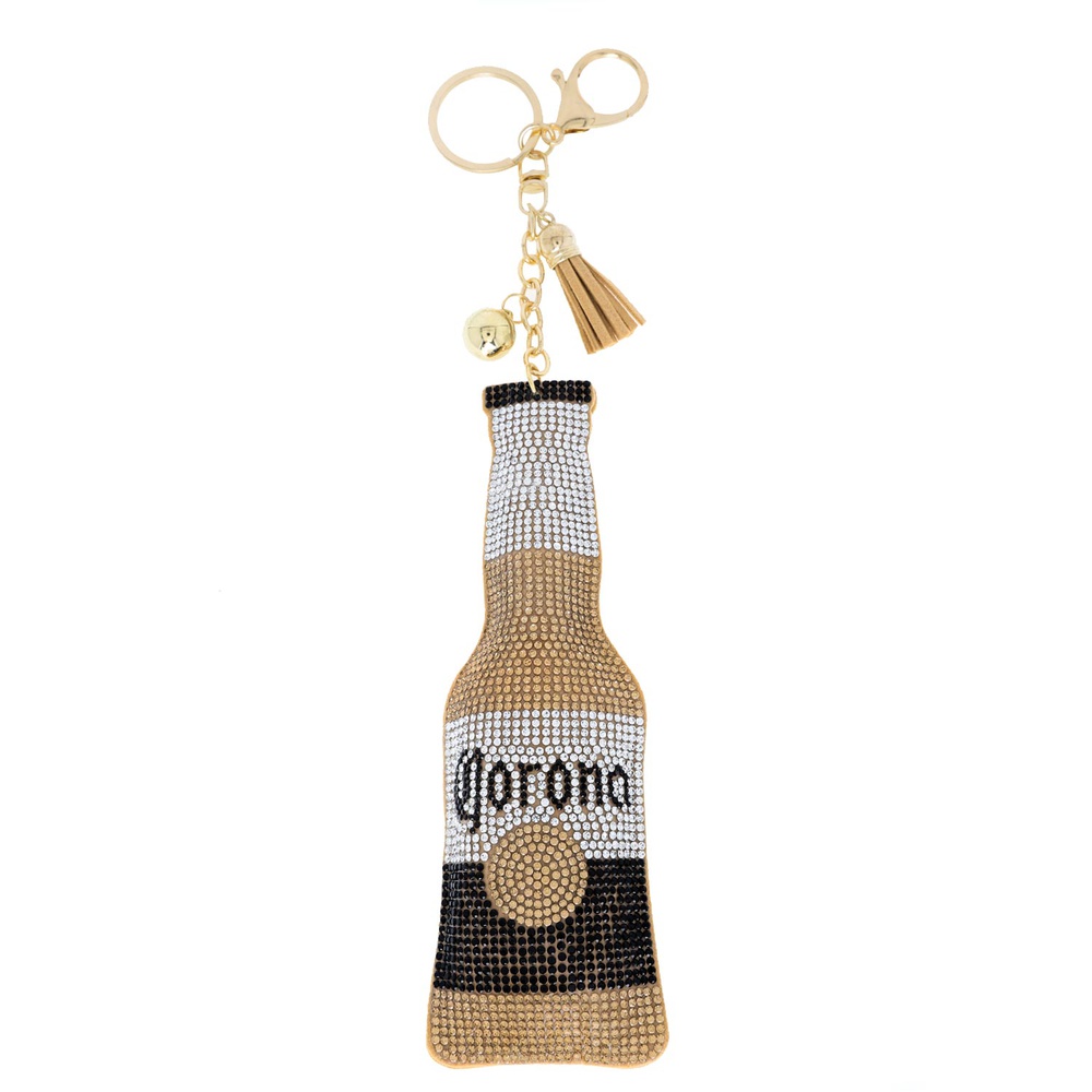 Jeweled Beer Bottle Fringe Jingle Charm Keychain