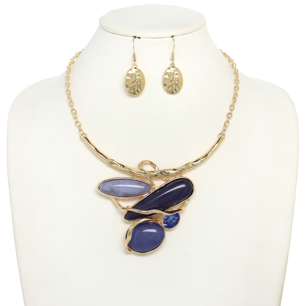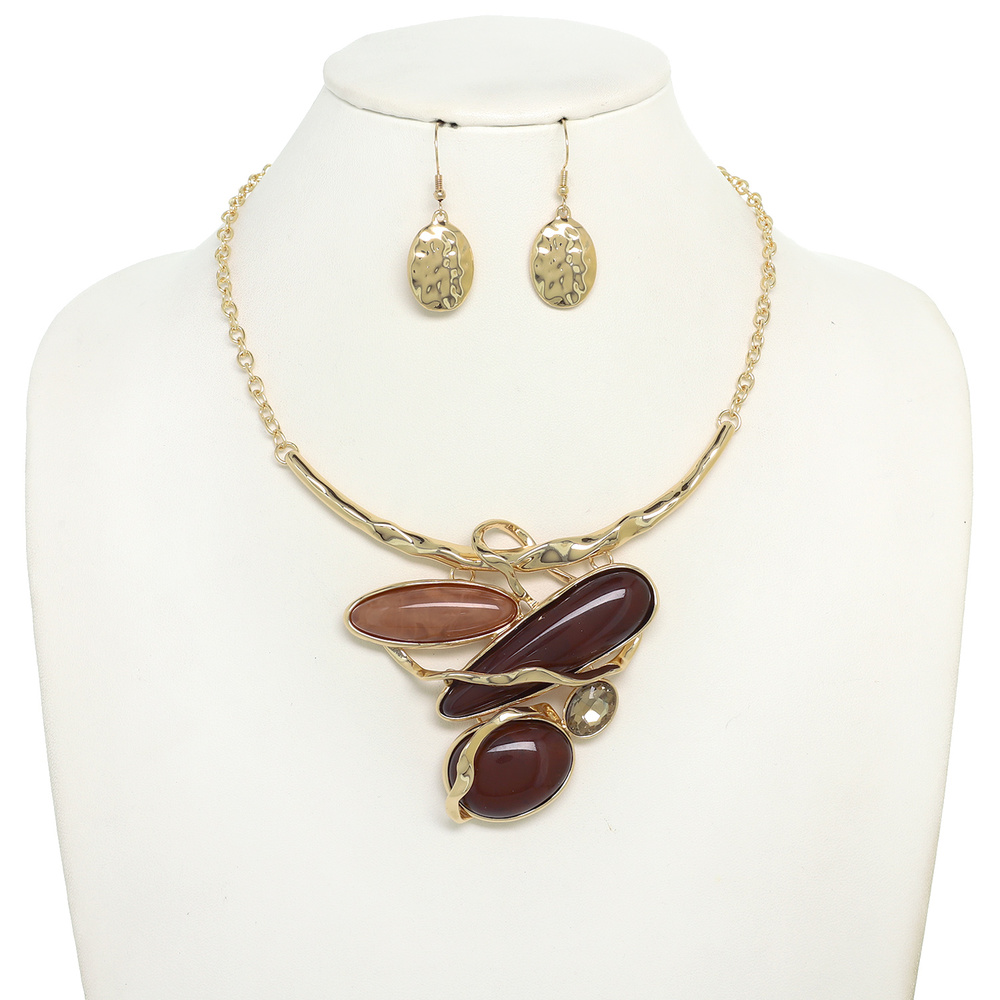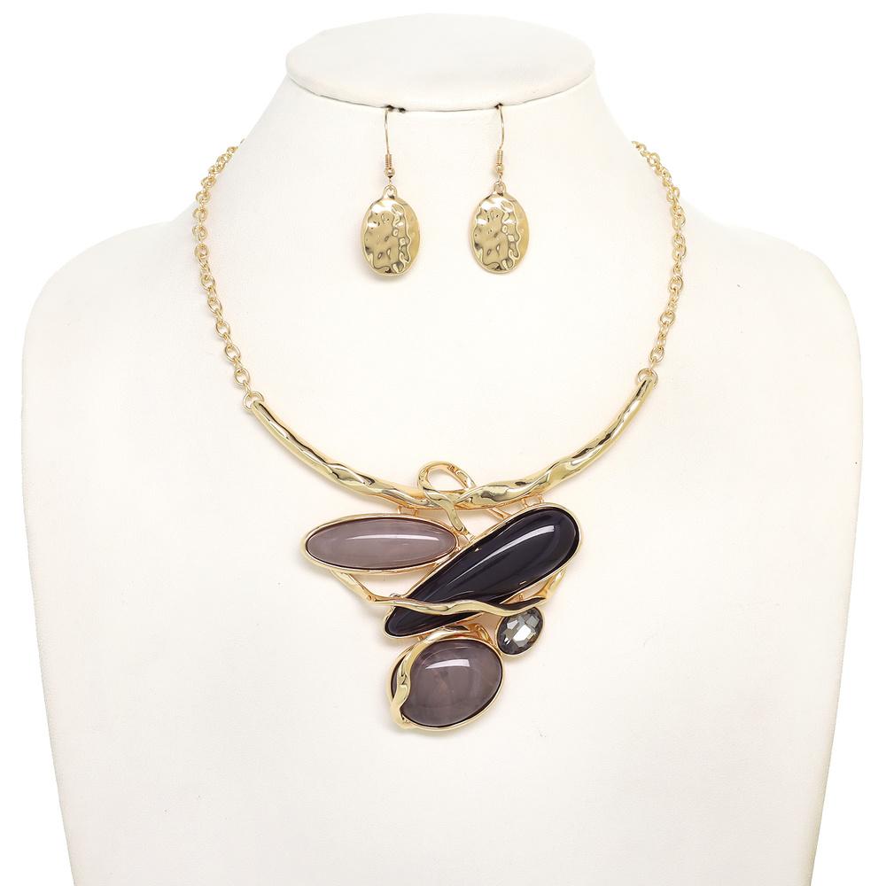 IRREGULAR OVAL SHAPE AMORPHOUS CELLULOSE ACETATE PENDANT NECKLACE EARRING SET