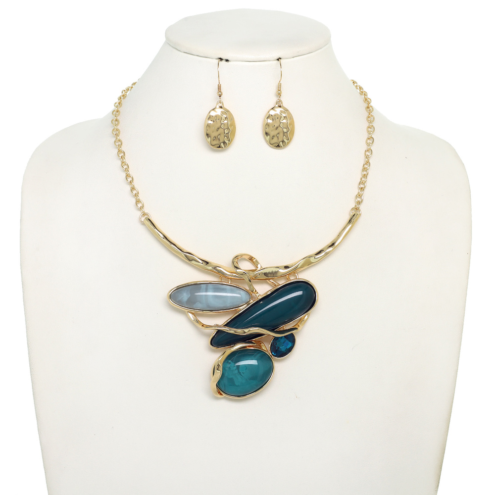 IRREGULAR OVAL SHAPE AMORPHOUS CELLULOSE ACETATE PENDANT NECKLACE EARRING SET
