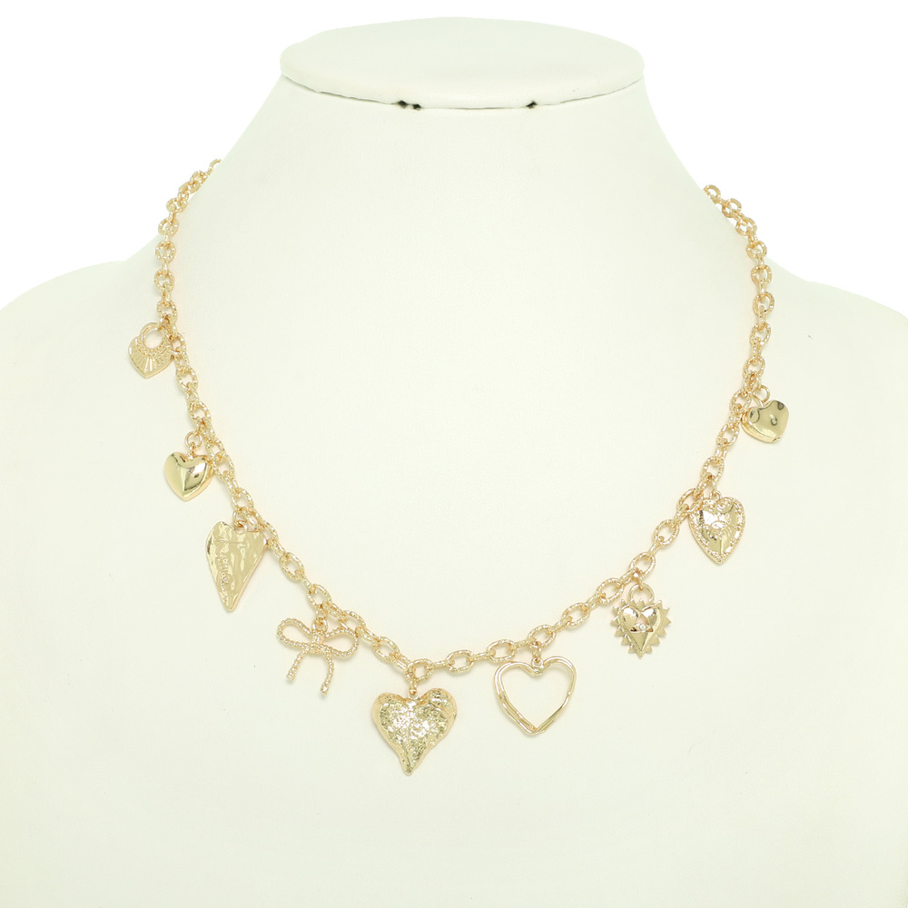 MULTIPLE HEART CHARM CHAIN NECKLACE IN YELLOW GOLD-TONE METAL