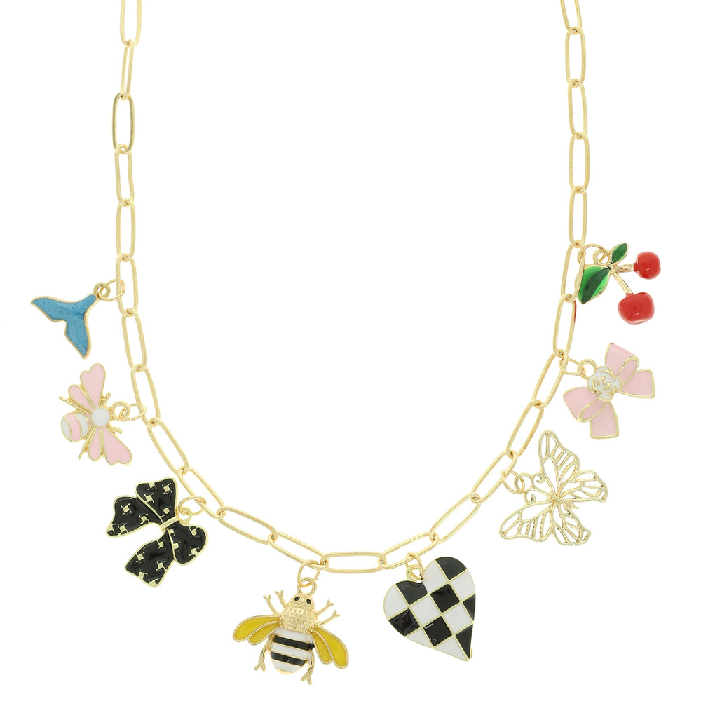 WHIMSICAL SRING THEME ENAMEL MULTI-CHARM PENDANT NECKLACE