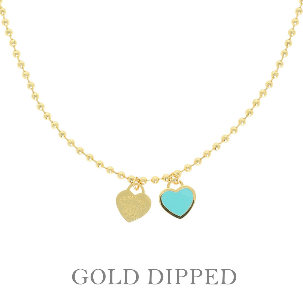 GOLD PLATED ENAMEL INLAY DUAL HEART PENDANT NECKLACE