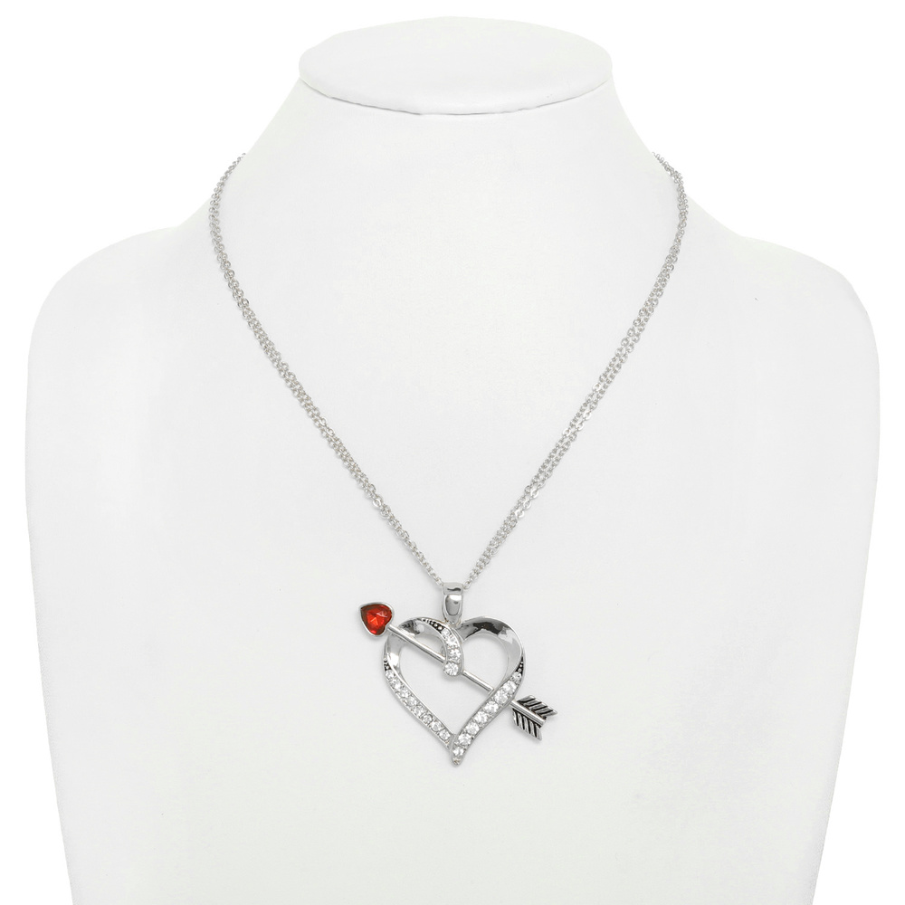 CRYSTAL RHINESTONE PAVE HEART AND ARROW PENDANT NECKLACE
