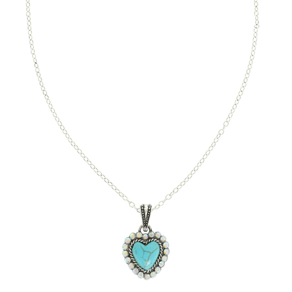 WESTERN CRYSTAL TURQUOISE PAVE HEART PENDANT NECKLACE