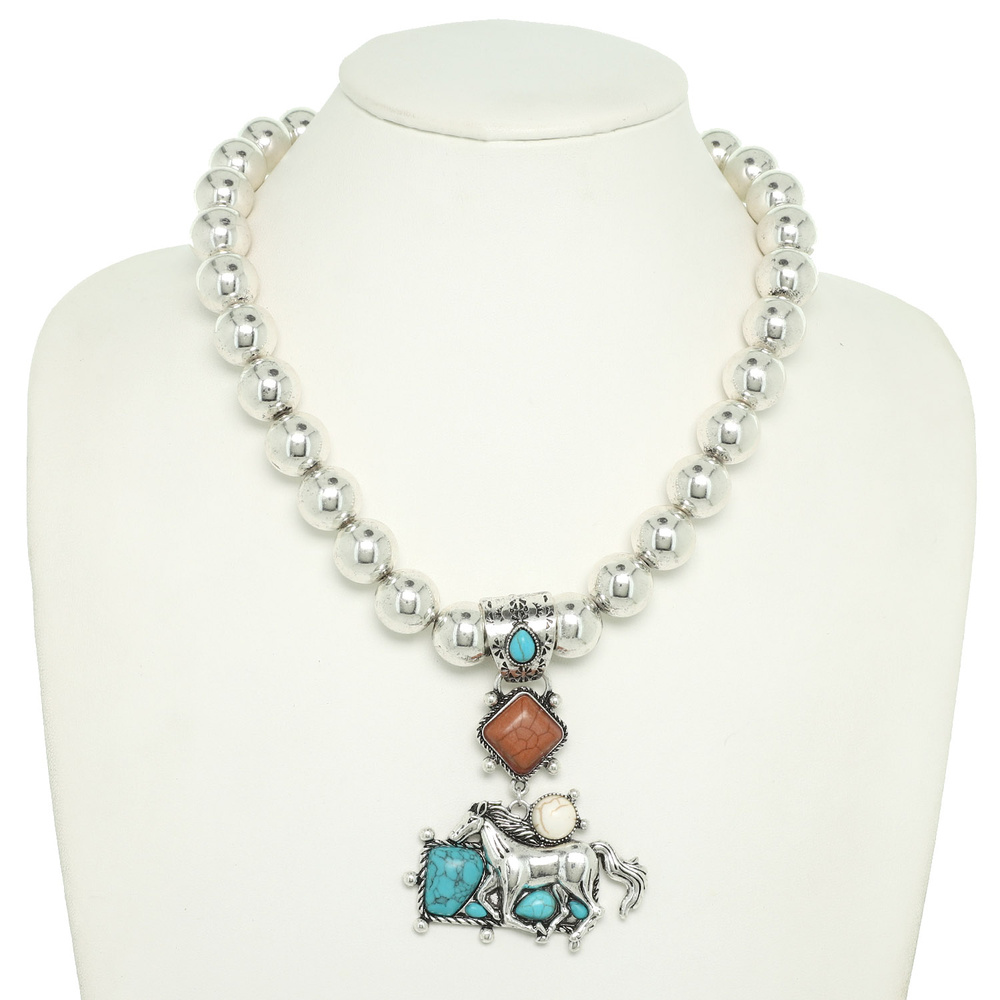 WESTERN MULTI-COLOR TURQUOISE EMBELLISHED HORSE PENDANT NECKLACE