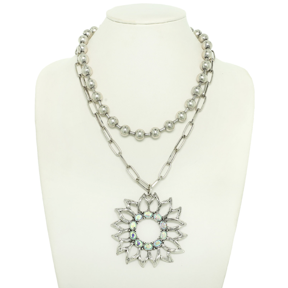 2 PIECE WESTERN CRYSTAL EMBELLISHED SUNFLOWER PENDANT NECKLACE SET