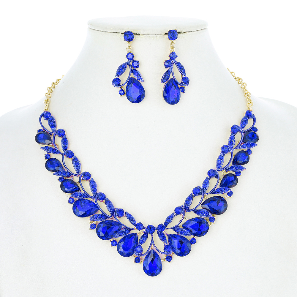 CRYSTAL RHINESTONE EMBELLISHED V-SHAPE STATEMENT NECKLACE EARRING SET