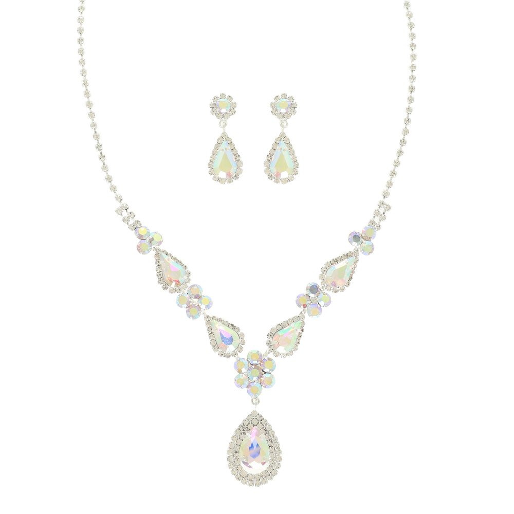 RHINESTONE PAVE TEARDROP CUT CRYSTAL STATEMENT NECKLACE EARRING SET