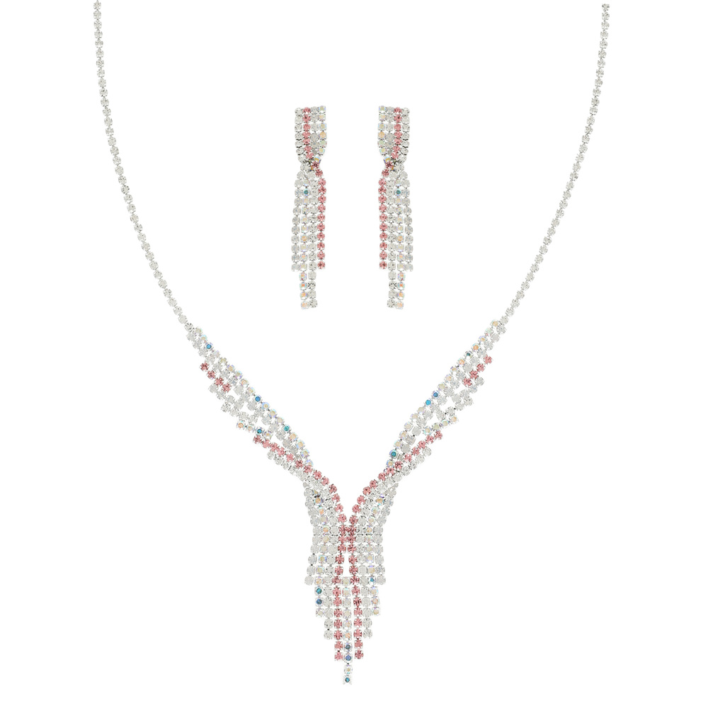 Crystal Rhinestone Pave V-shaped Necklace Set