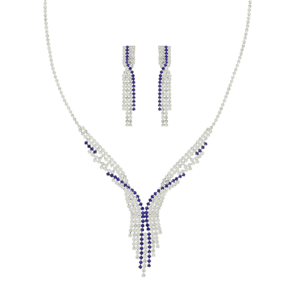 Crystal Rhinestone Pave V-shaped Necklace Set