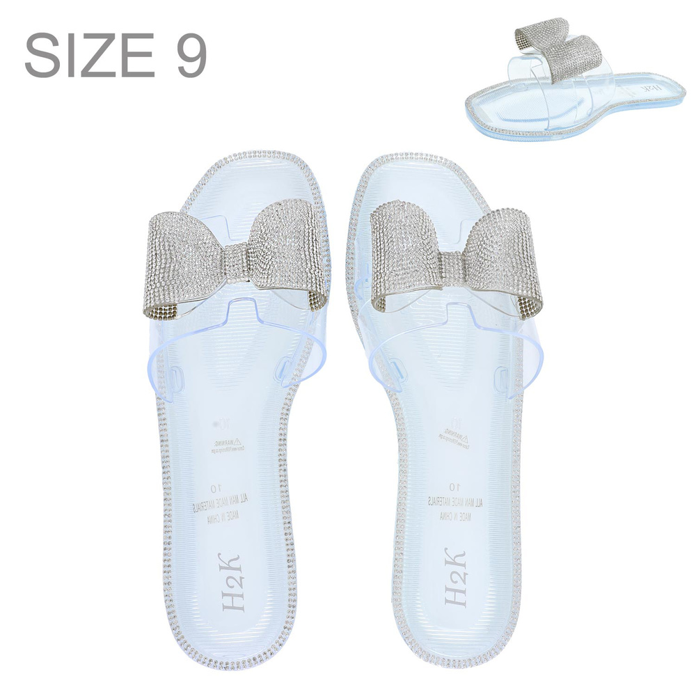 CLEAR WOMEN'S CRYSTAL RHINESTONE STUDDED BOW FLAT TRANSPARENT JELLY SLIP-ON SANDALS