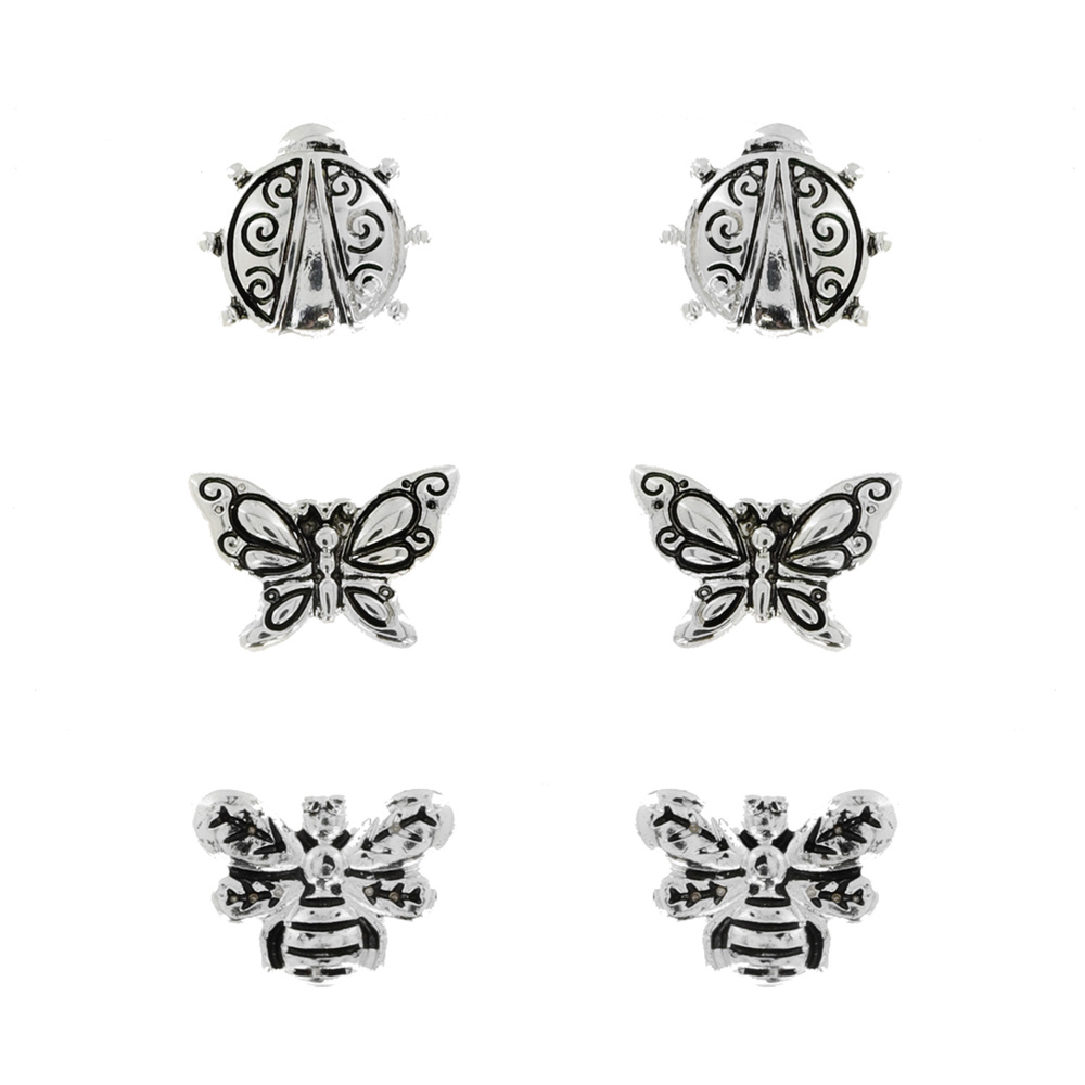 Lady Bug/ Butterfly/ Honey Bee - 3-pair Enchanted Garden Insect Stud Earrings Set