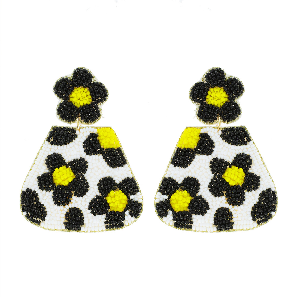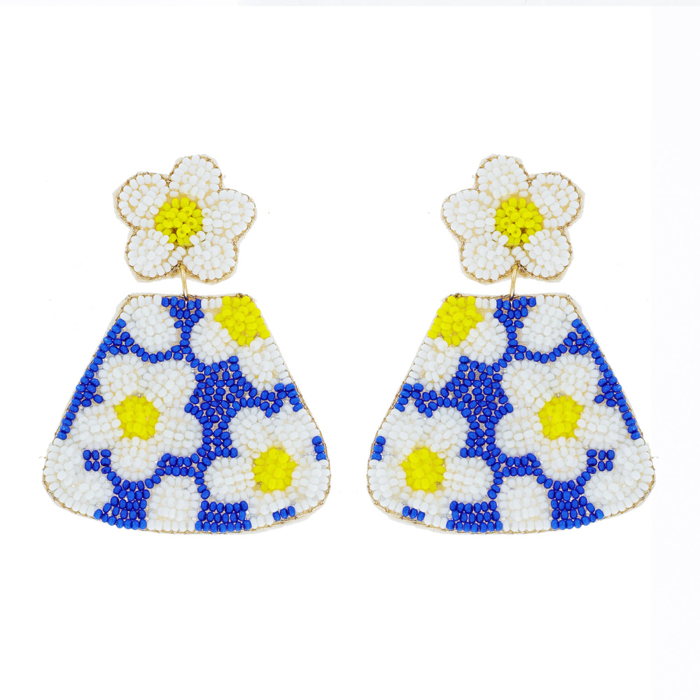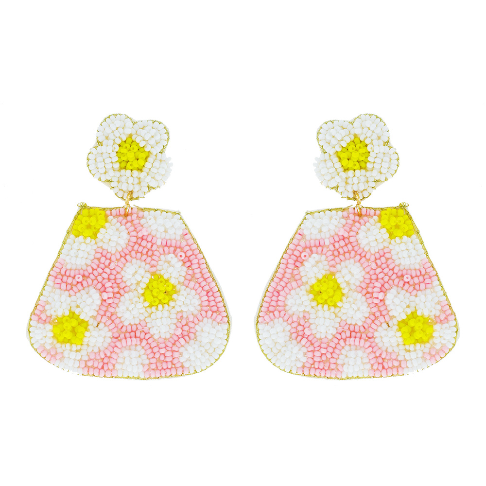 DAISY FLOWER PATTERN SEED BEAD HANDMADE BEADED EMBROIDERY FLORAL DANGLE AND DROP EARRINGS