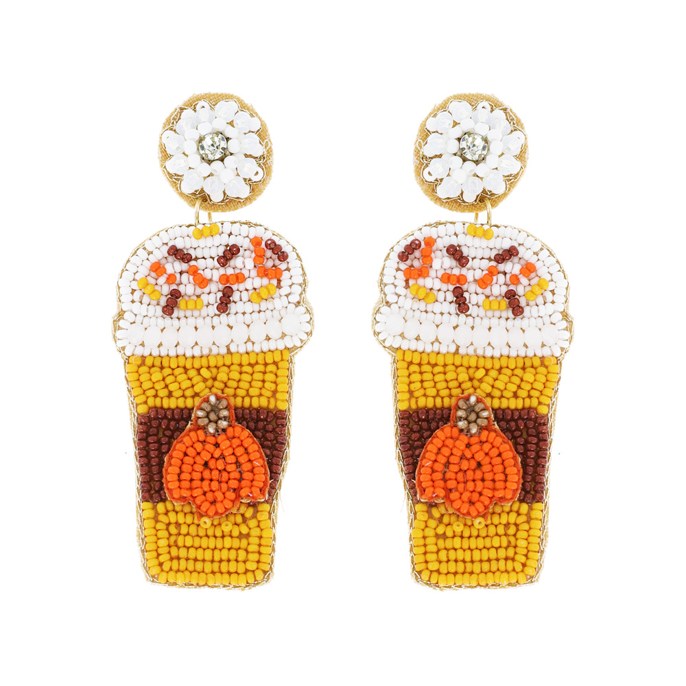 PUMPKIN SPICE LATTE SEED BEAD HANDMADE BEADED JEWELED EMBROIDERY DANGLE AND DROP EARRINGS