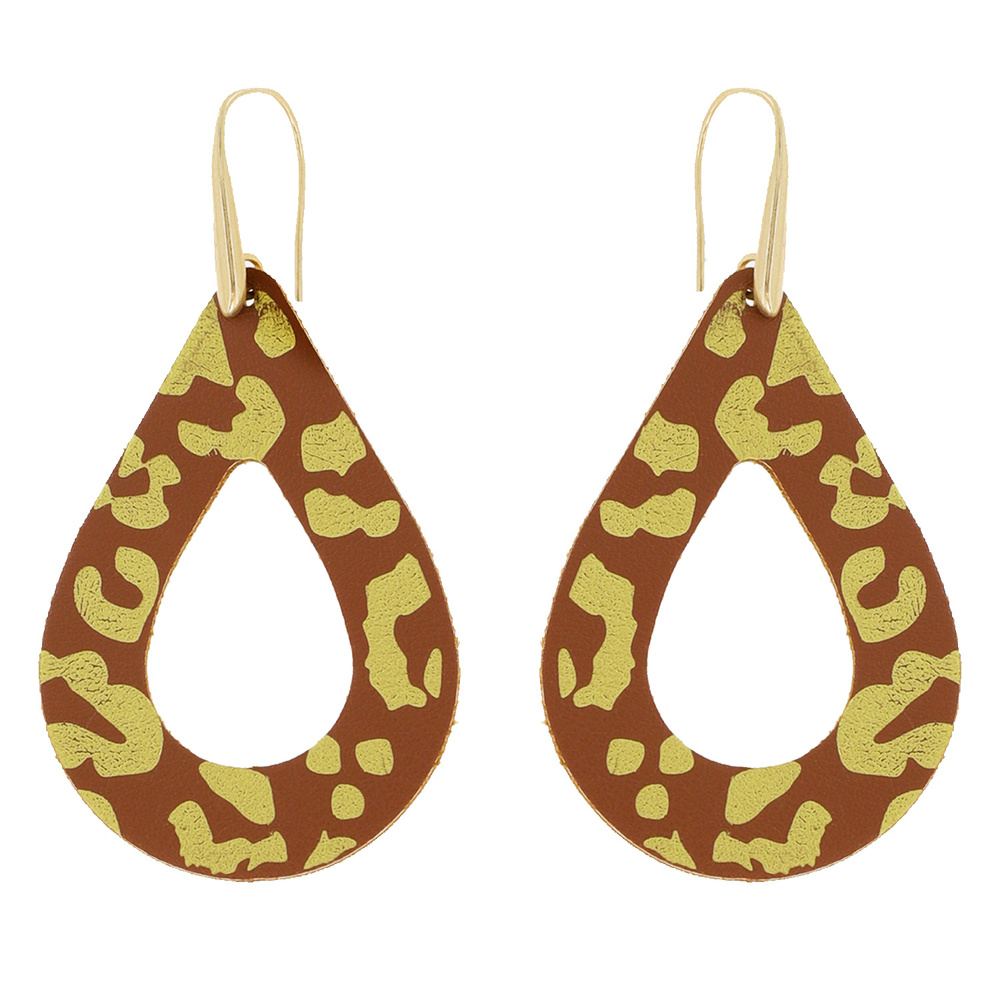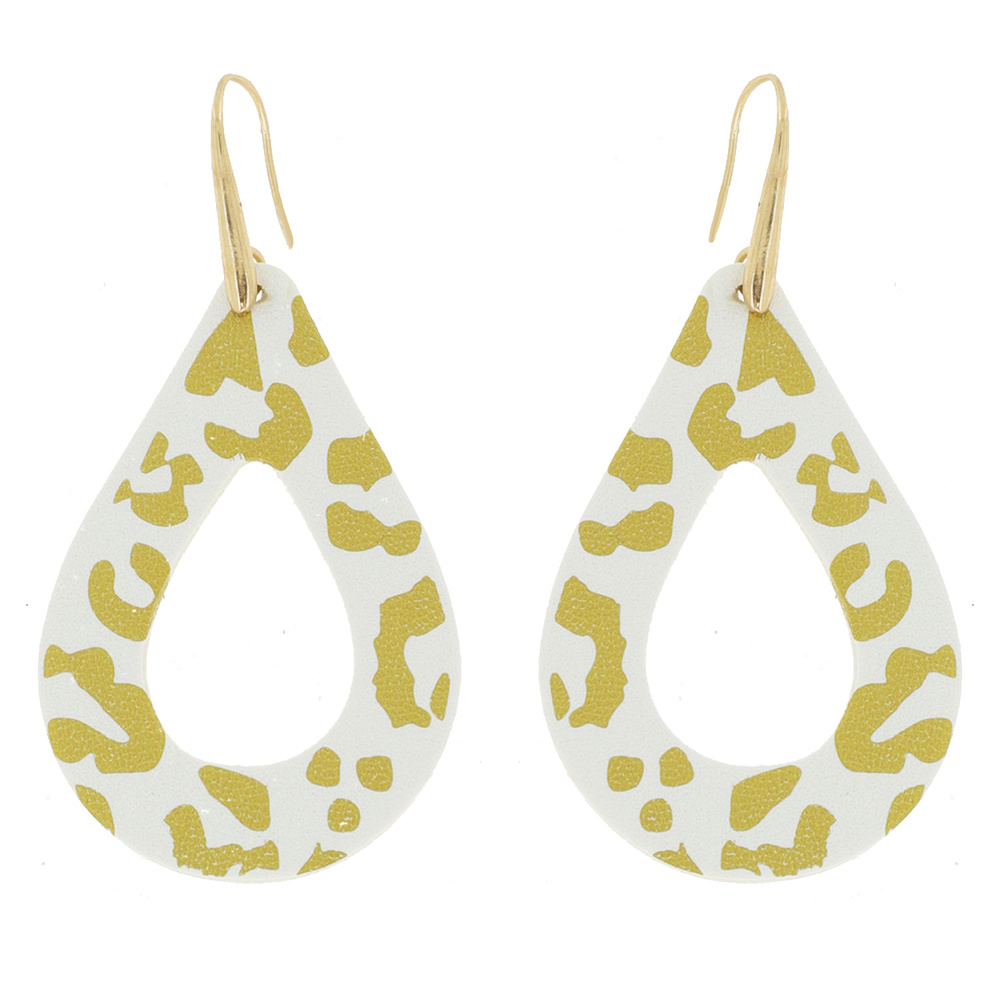 Boho Vegan Faux Leather Gold Leopard Animal Print Open Teardrop Dangle And Drop Earrings