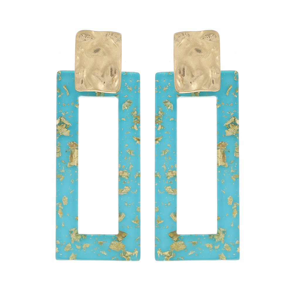 Boho Open Rectangle Resin Gold Foil Dangle And Drop Earrings