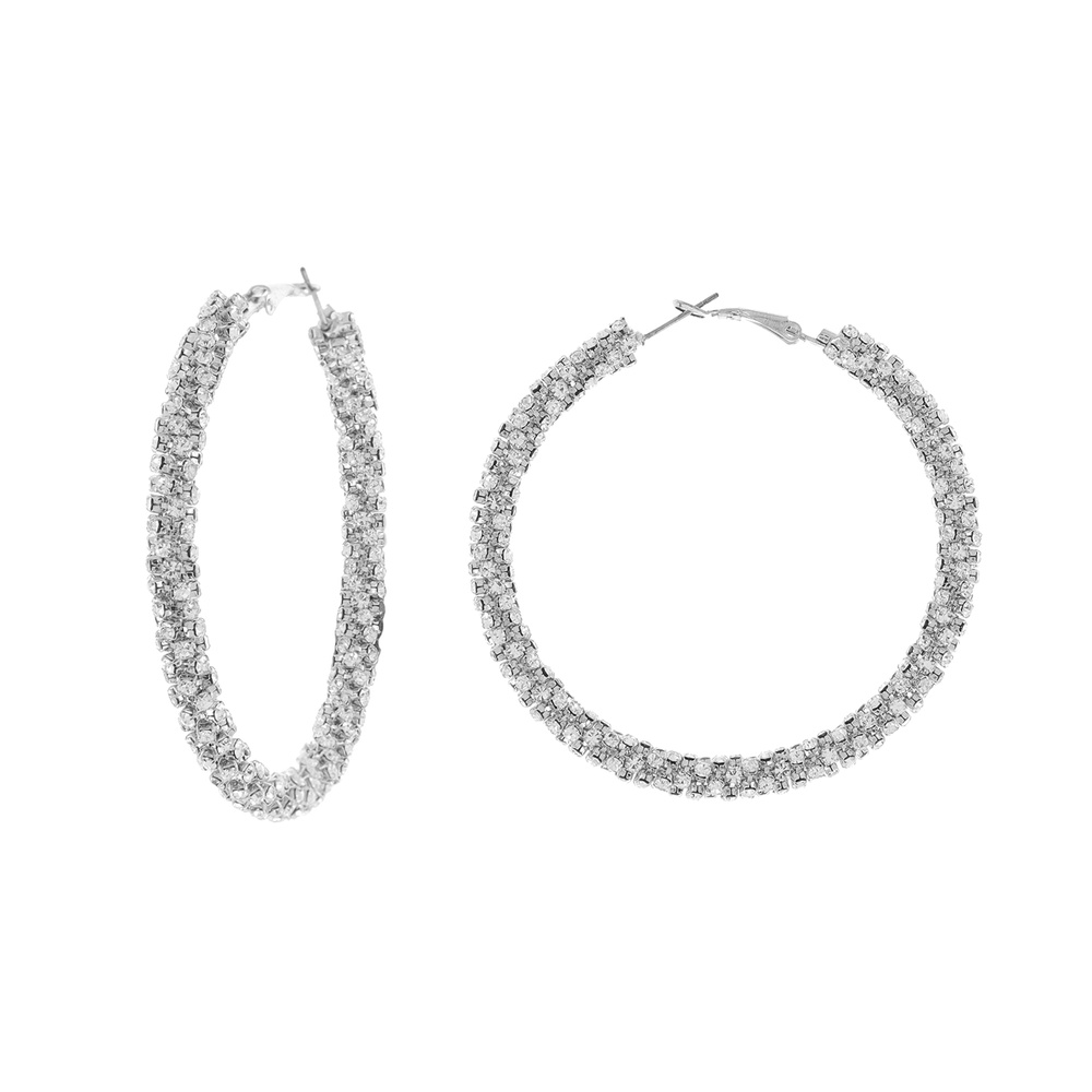40MM PAVE TWISTED RHINESTONE DESIGN HOOP EARRINGS
