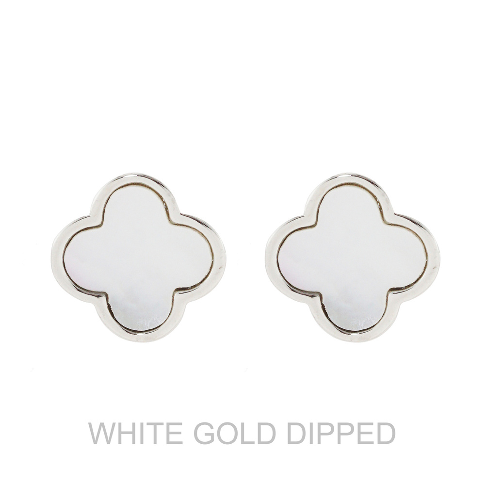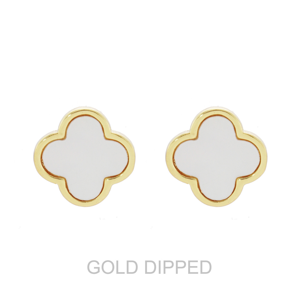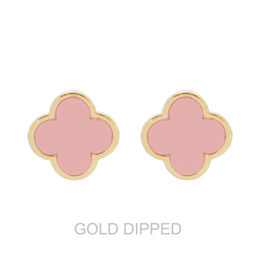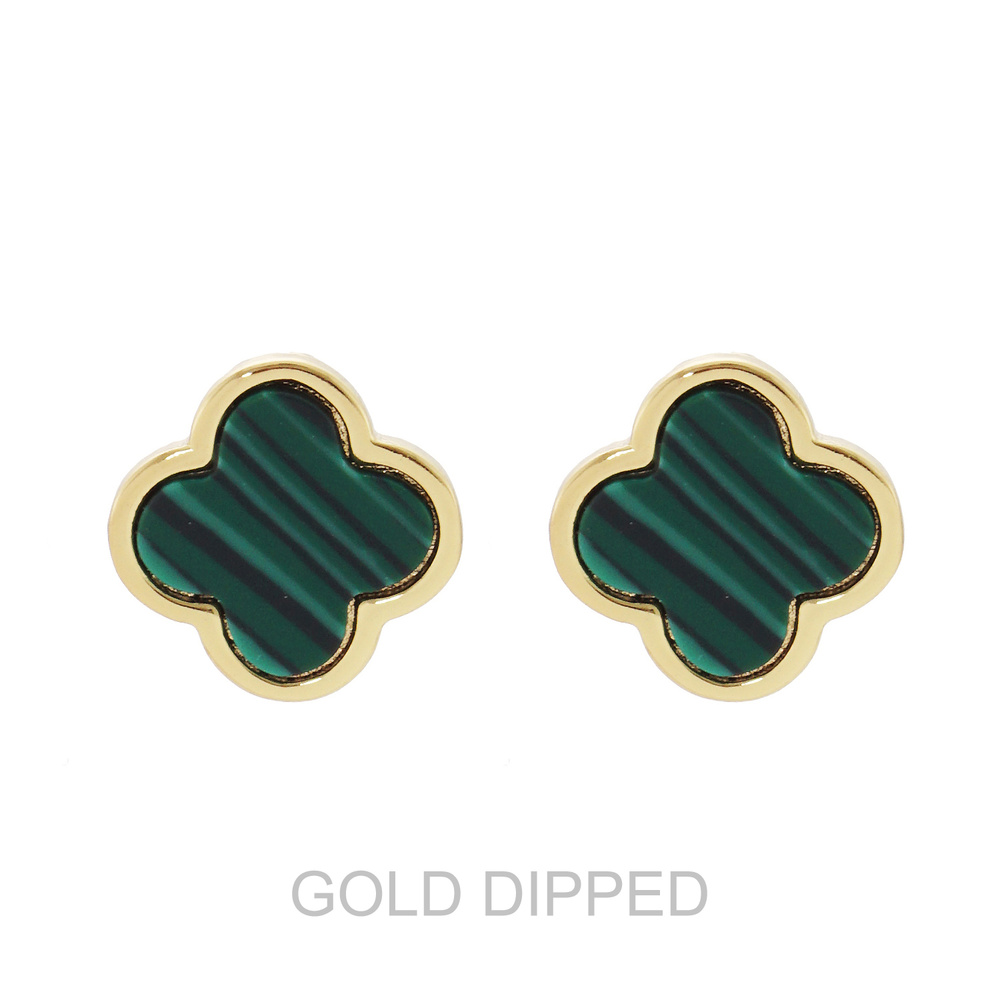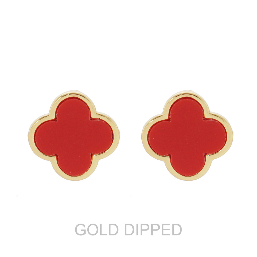 GOLD DIPPED QUATREFOIL ENAMEL GEMSTONE STUD EARRINGS