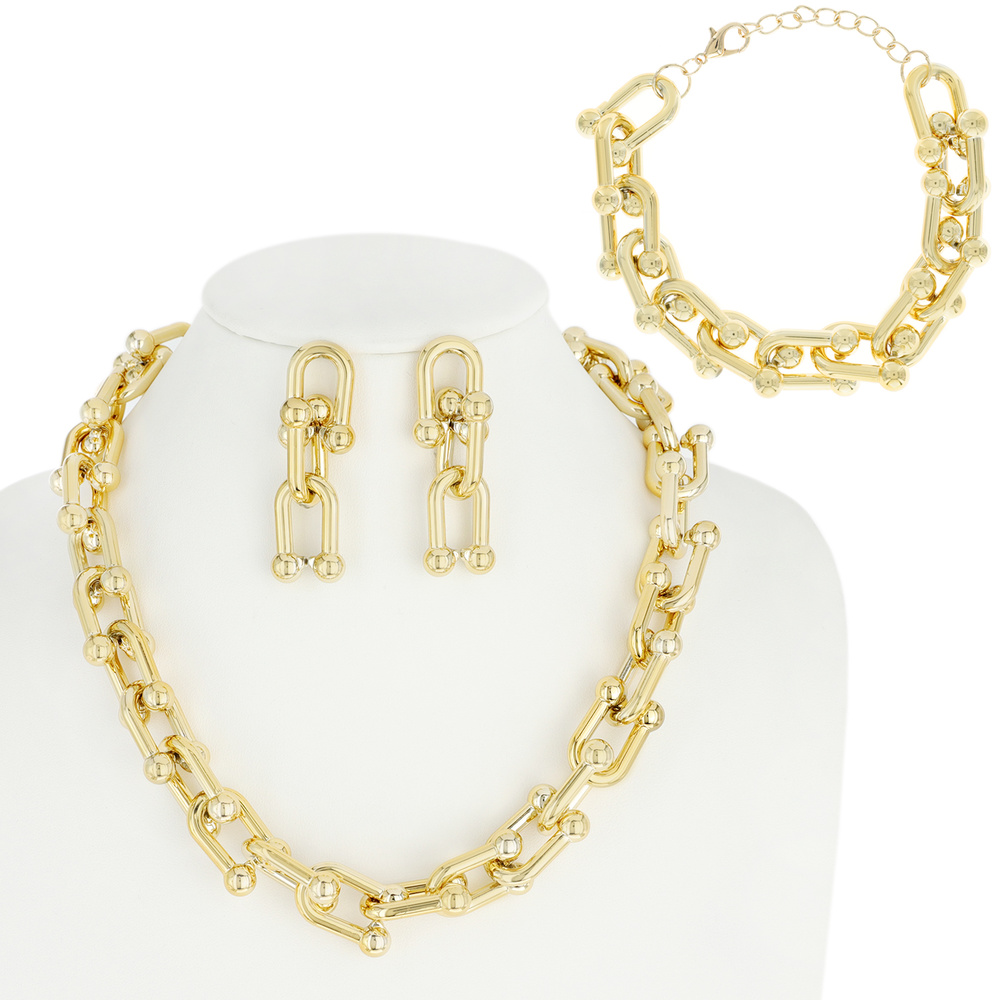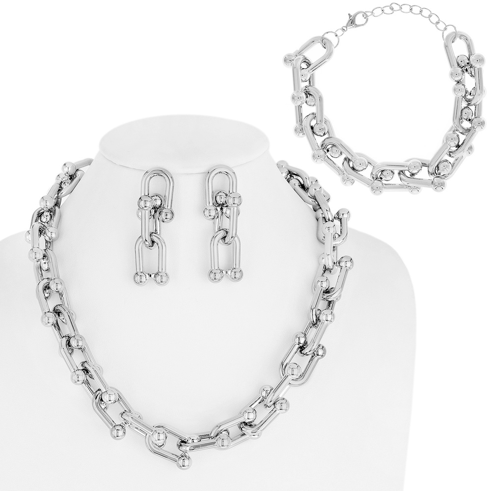 THICK HARDWARE LINK CHAIN NECKLACE BRACELET EARRINGS SET
