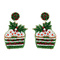 2-tier Mistletoe Christmas Cupcake Seed Bead Handmade Crystal Rhinestone Jeweled Embroidery Dangle And Drop Novelty Earrings