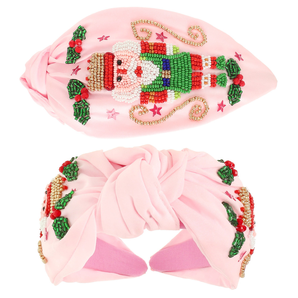 CHRISTMAS NUTCRACKER STAR SEQUIN SEED BEADED TOP KNOT HEADBAND
