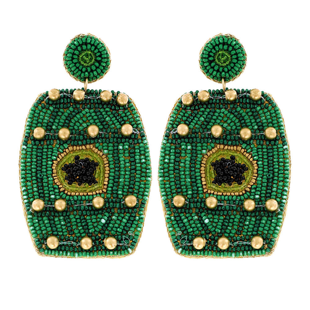 2-tier Seed Bead Saint Patrick's Day Beer Keg Handmade Beaded Embroidery Dangle And Drop Novelty Earrings