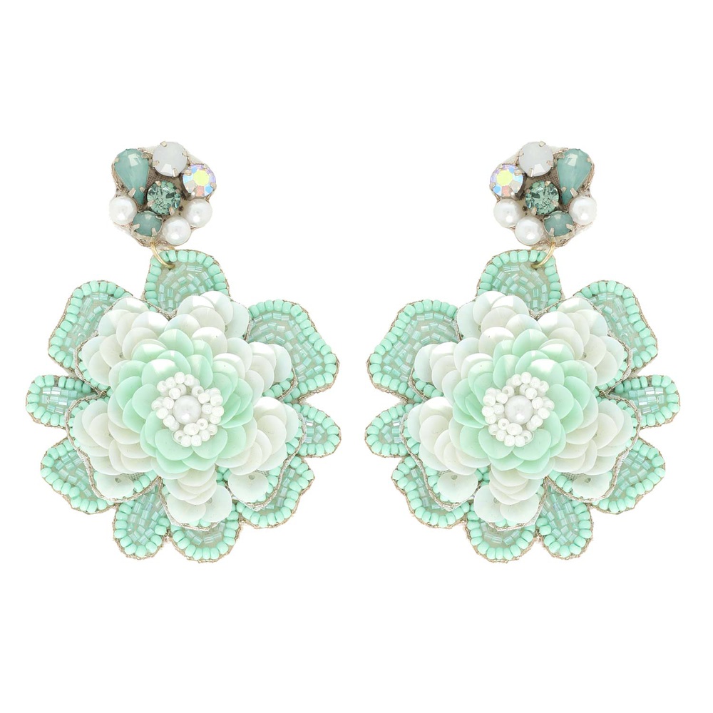 2-tier Jeweled Floral Bead Mix Drop Earrings