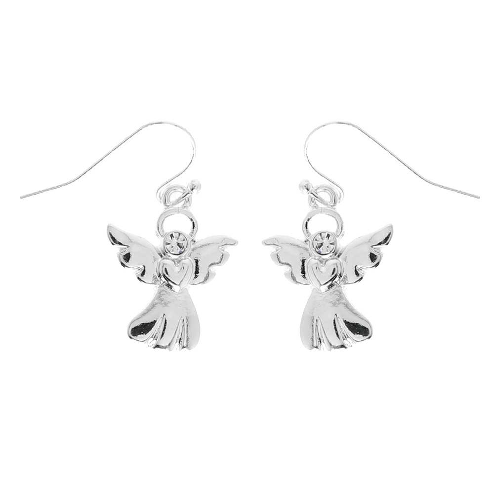 INSPIRATION THEME ANGEL FISHHOOK EARRINGS IN SILVER-TONE METAL