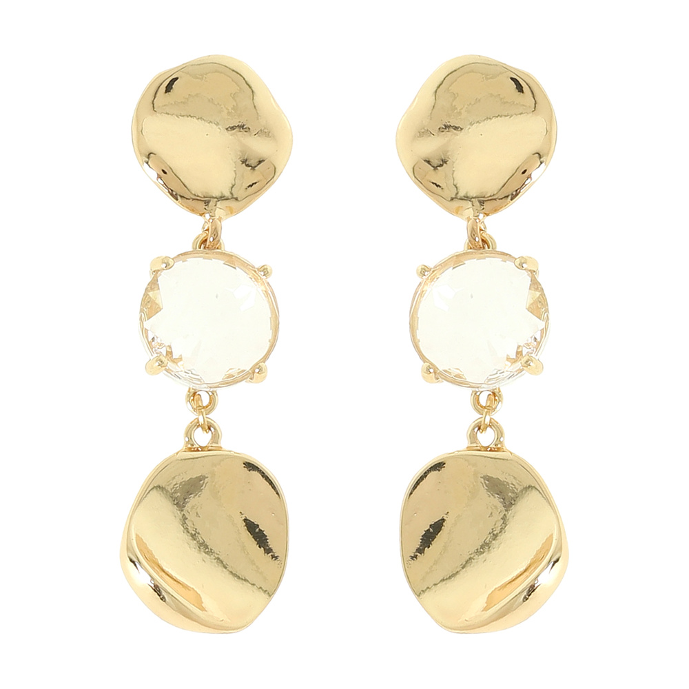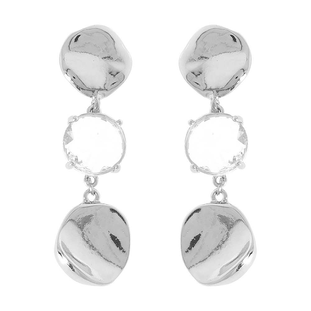ROUND CUT CRYSTAL ASYMMETRICAL DISC LINEAR POST EARRINGS