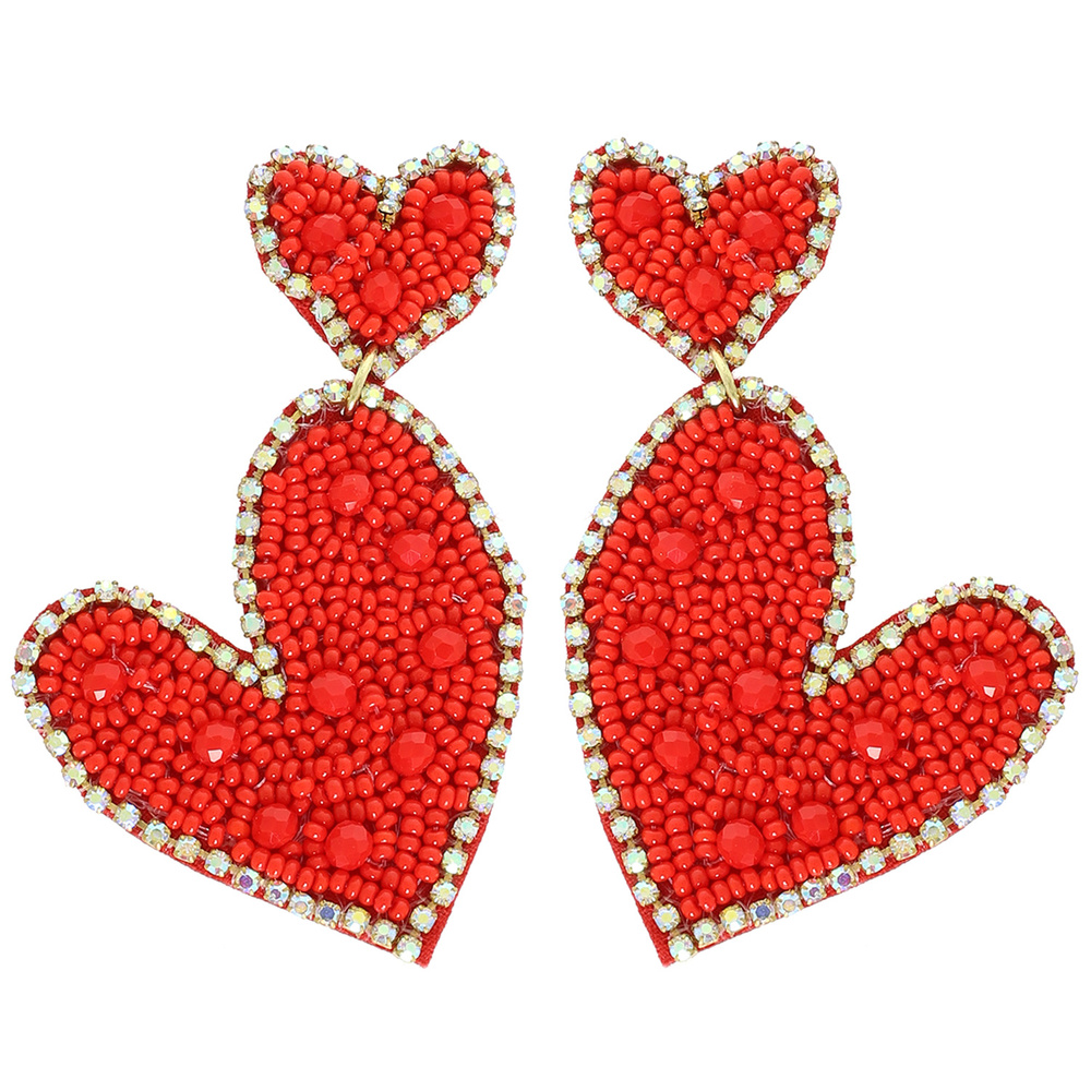 HEART RHINESTONE BEAD EMBELLISHED POST DANGLE EARRINGS