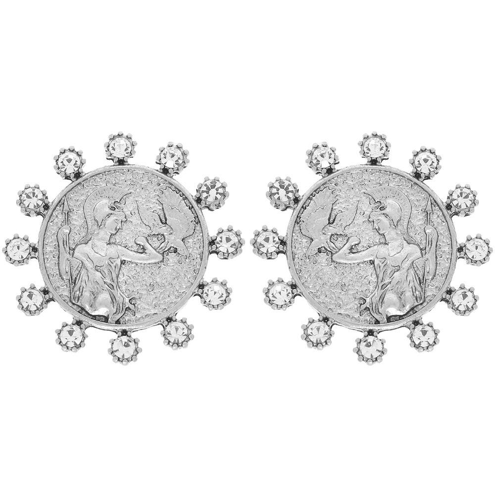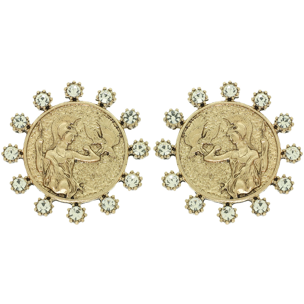CRYSTAL EMBELLISHED ROMAN SOLDIER IMPERIAL REPLICA COIN POST EARRINGS