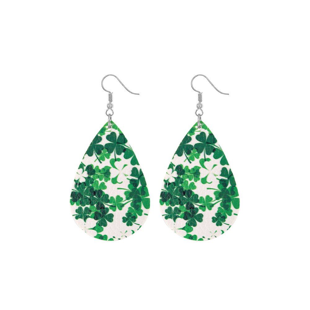 FOUR-LEAF CLOVER PATTERN TEARDROP DANGLE EARRINGS