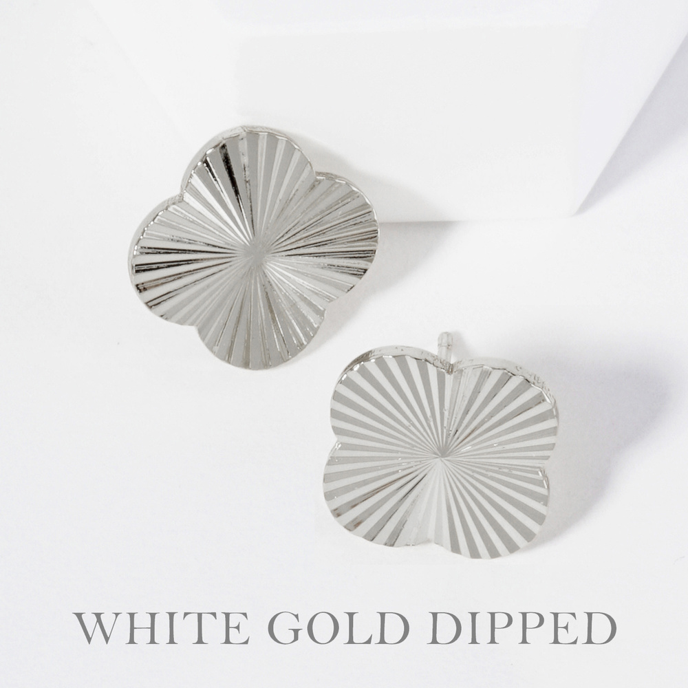 SCALLOPED QUATREFOIL CLOVER POST EARRINGS IN GOLD PLATING