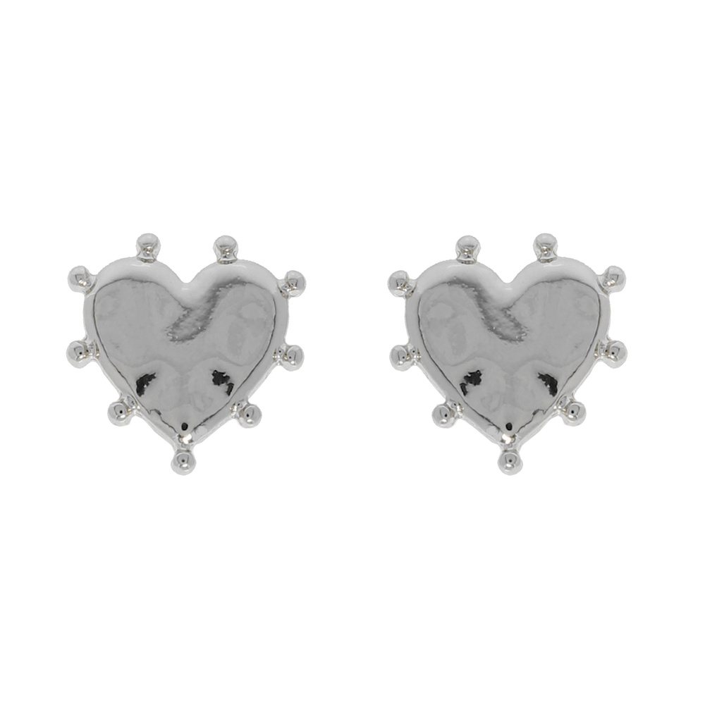 POLISHED HEART STUD EARRINGS WITH ROUND BALL ACCENTED BORDER