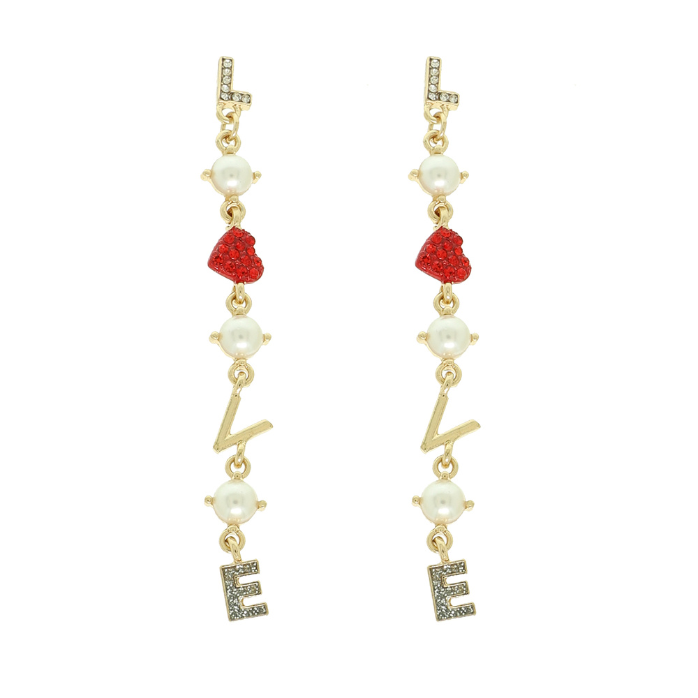 VALENTINE THEME RHINESTONE PEARL EMBELLISHED "LOVE" LINEAR POST EARRINGS