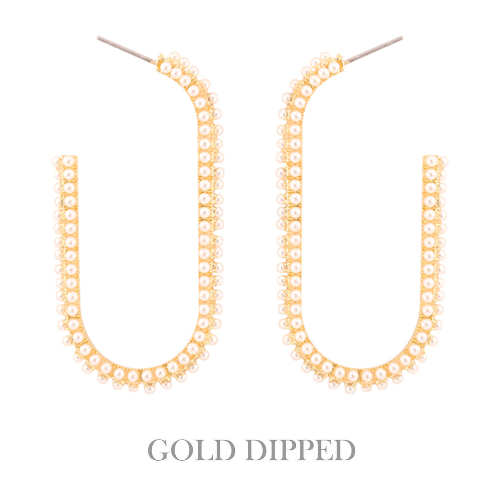 YELLOW GOLD DIPPED PEARL CAVIAR OPEN HOOP POST EARRINGS