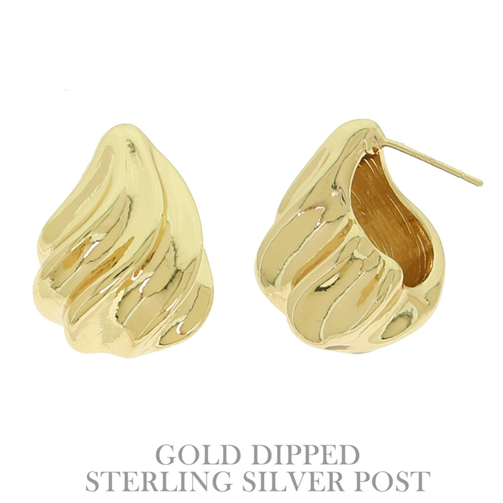 HOLLOW CONCH TEARDROP POST EARRINGS IN WHITE GOLD PLATING