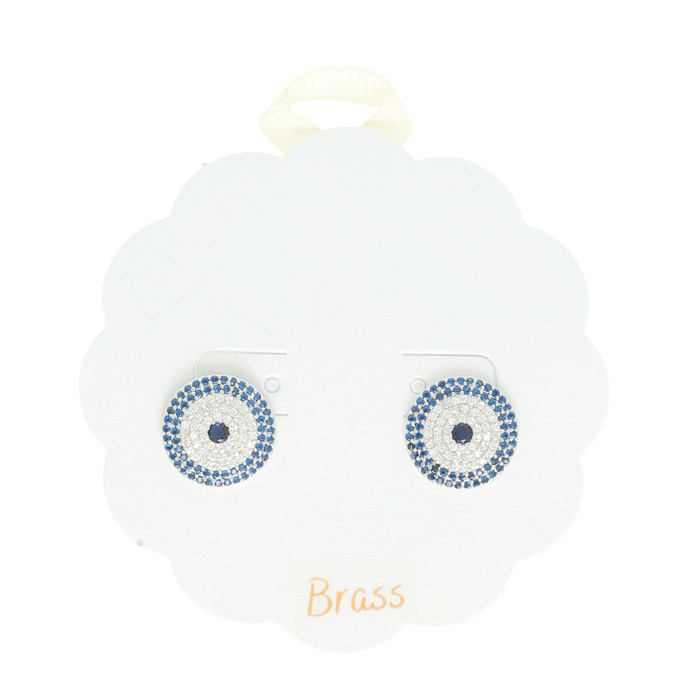 EVIL EYE BLUE AND WHITE RHINESTONE PAVE STUD EARRINGS
