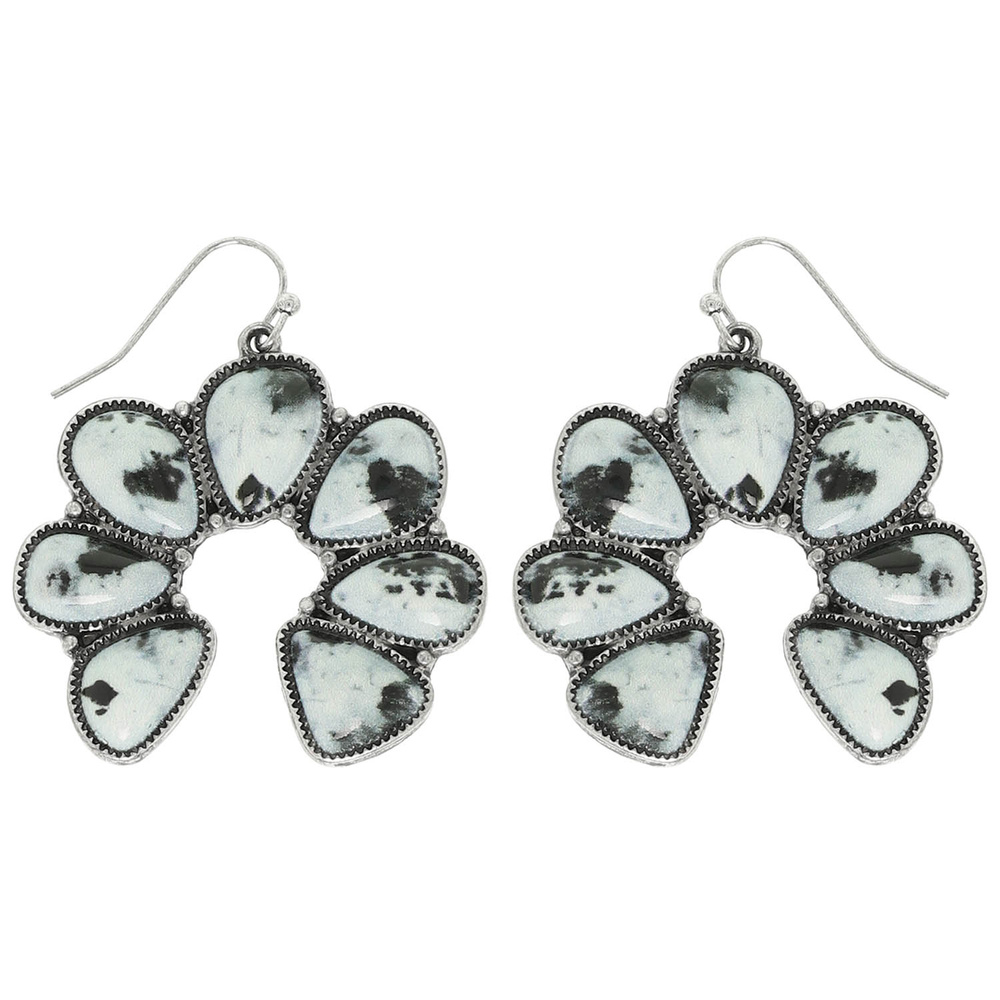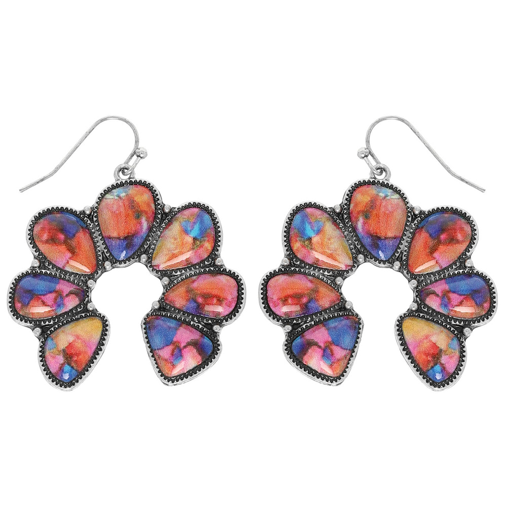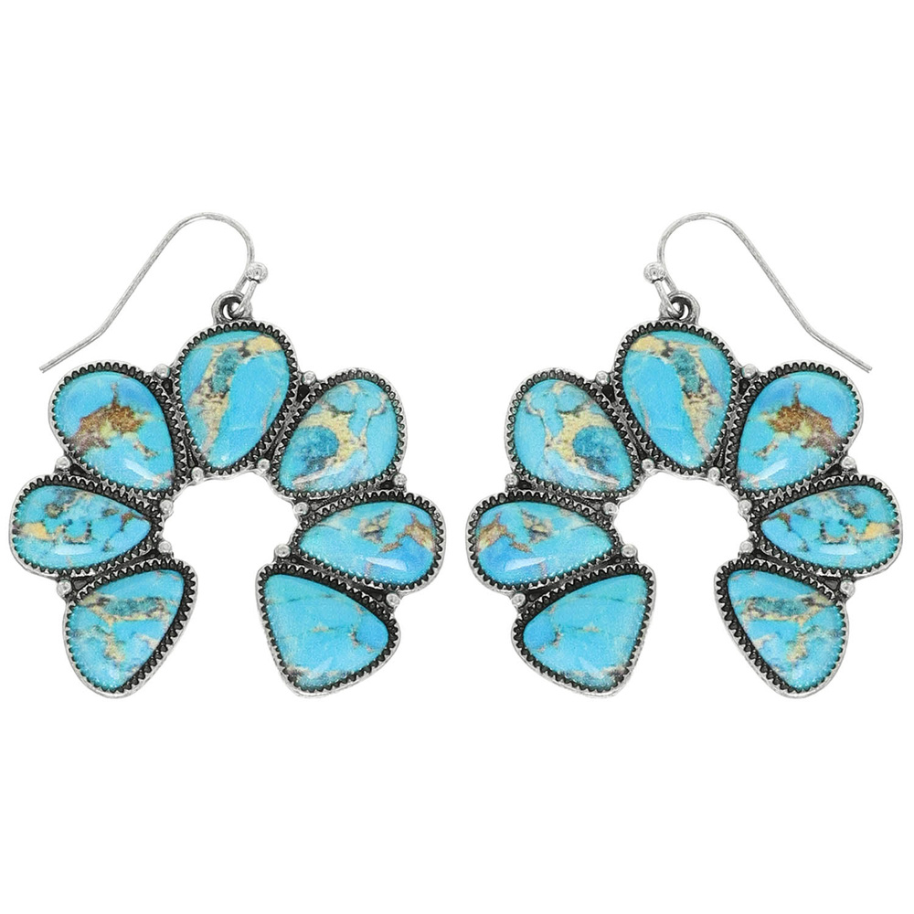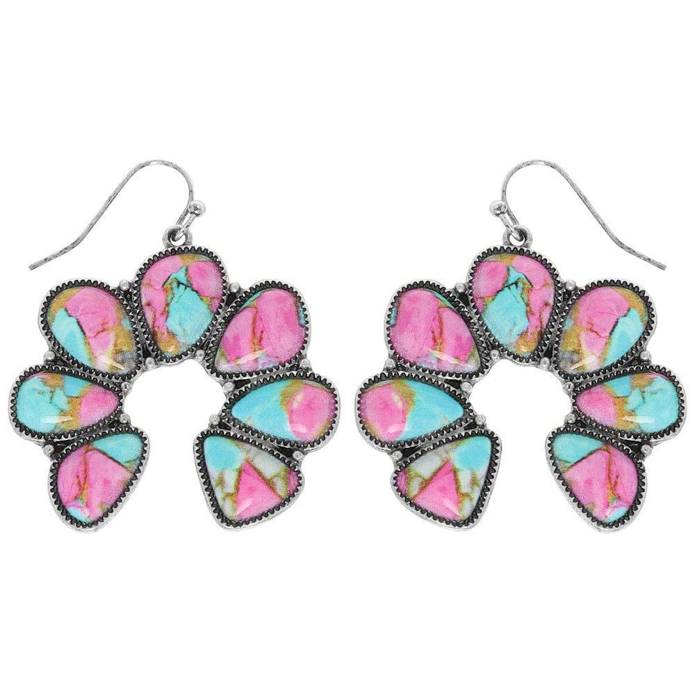 WESTERN SQUASH BLOSSOM DANGLE EARRINGS WITH MULTI TEARDROP STONES