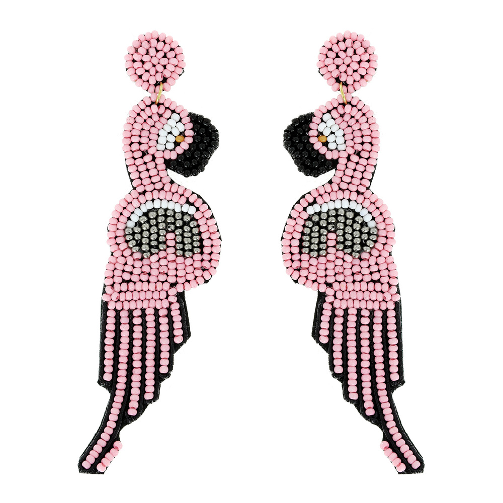 FLAMINGO SEED BEAD DANGLE EARRINGS