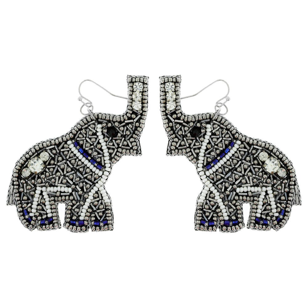 ELEPHANT SEED BEAD DANGLE EARRINGS