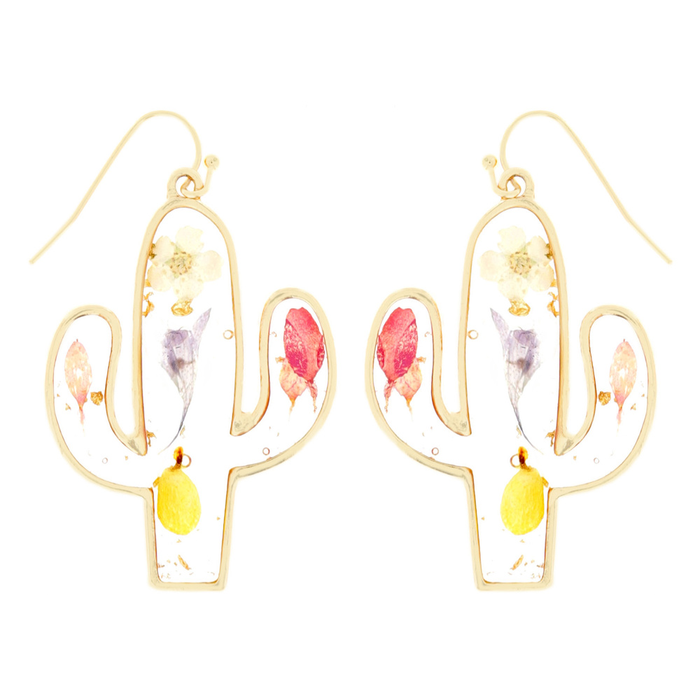 Natural Dried Flower Cactus Earrings Resin Floral Jewelry