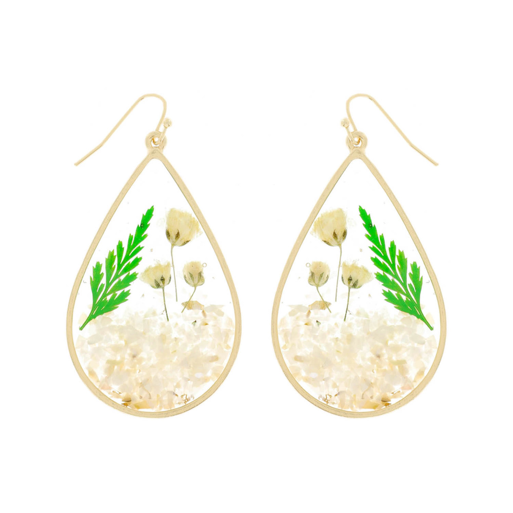 Natural Dried Flower Teardrop Earrings Resin Floral Jewelry