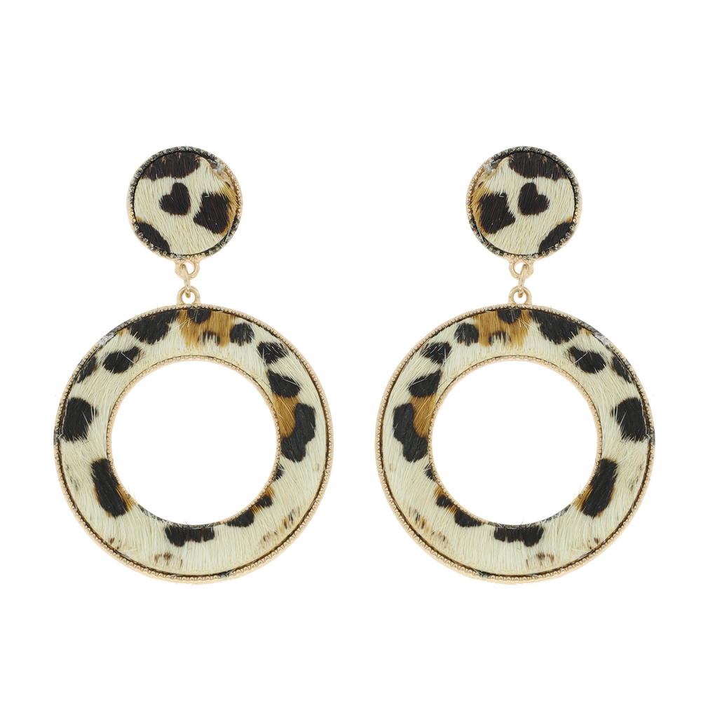 LEOPARD CHEETAH PRINT HOOP DANGLE EARRINGS
