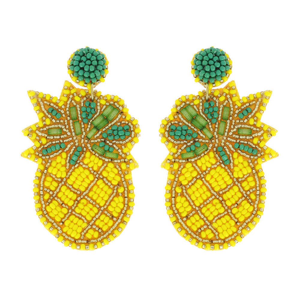 BEADED TROPICAL FRUIT PINEAPPLE SEED BEAD DANGLE EARRINGS