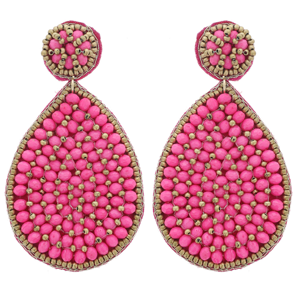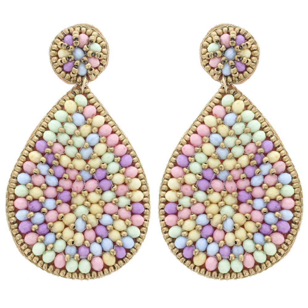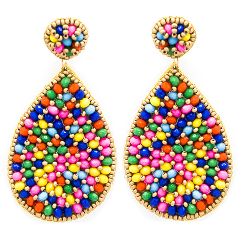 BOHO MULTICOLOR WOVEN SEED BEAD TEARDROP DANGLE EARRINGS