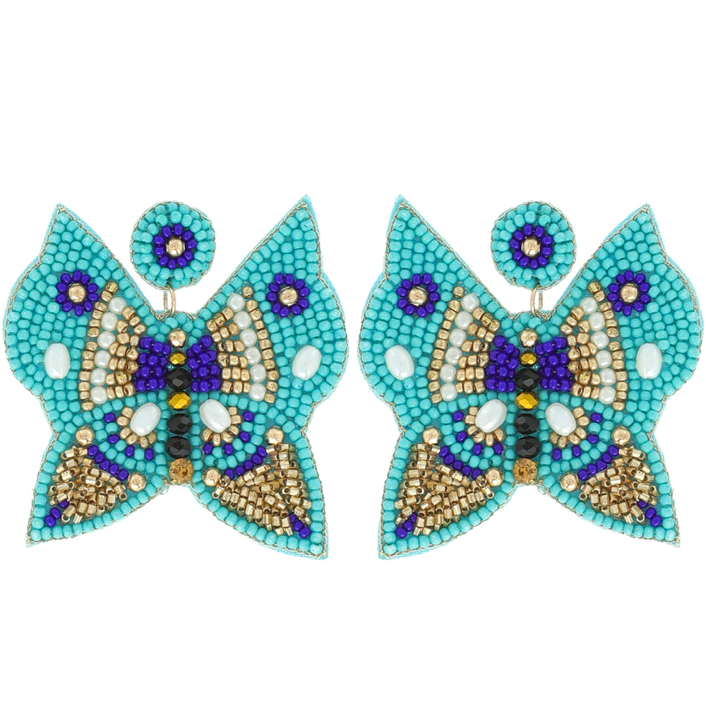 SEED BEAD EMBELLISHED MULTICOLORED BUTTERFLY DROP EARRINGS