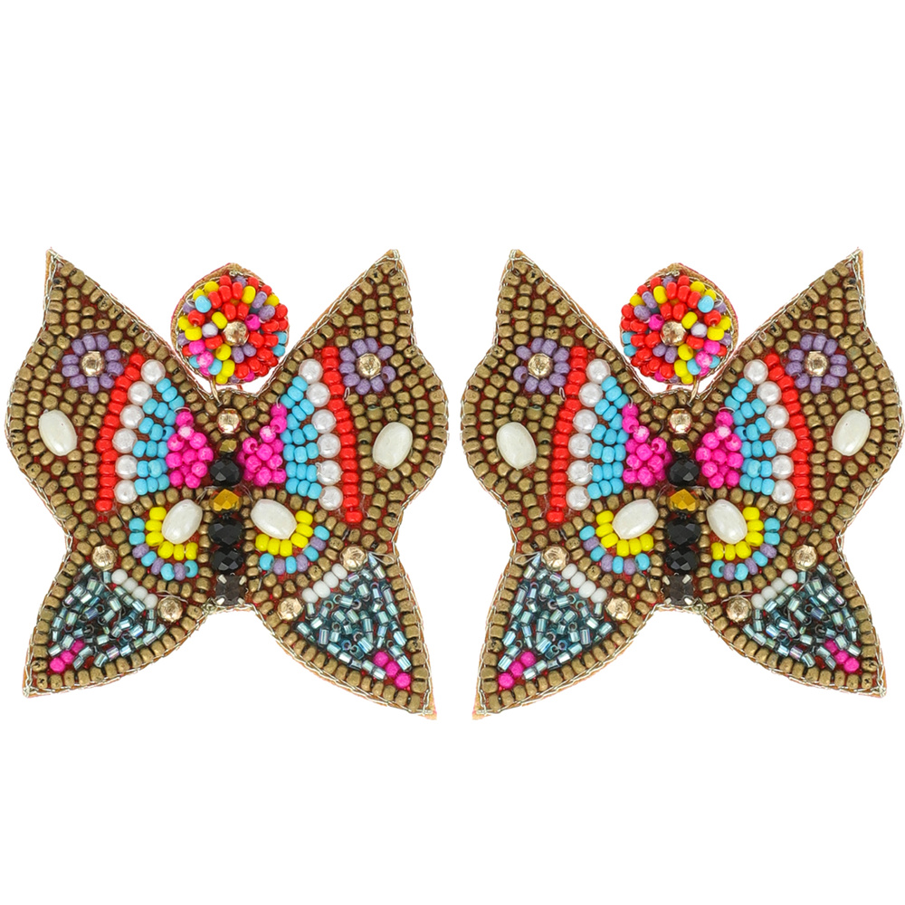 Seed Bead Embellished Multicolored Butterfly Drop Earrings