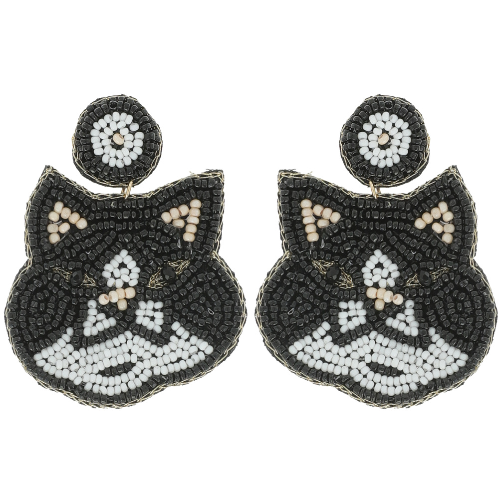 PET PARENT TUXEDO CAT SEED BEAD DROP EARRINGS