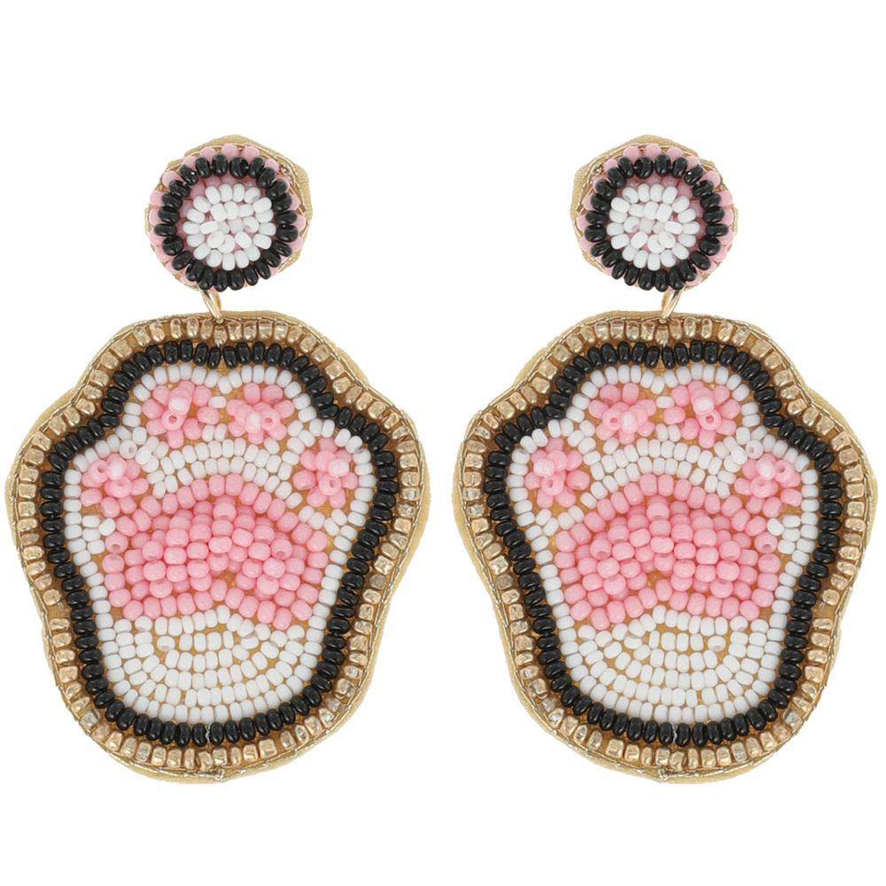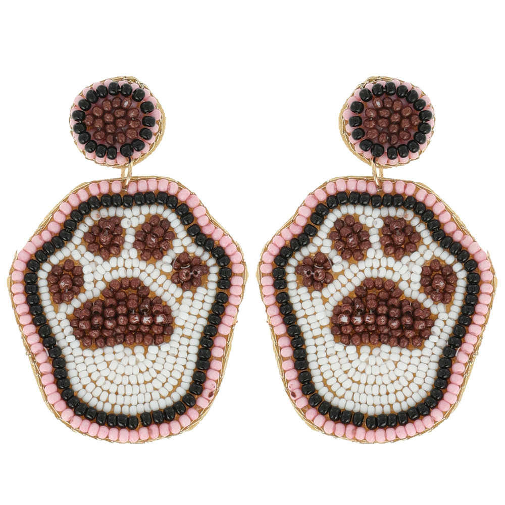 PET PARENT CAT/ DOG PAW SEED BEAD EMBELLISHED PET PAW PRINT DROP EARRINGS